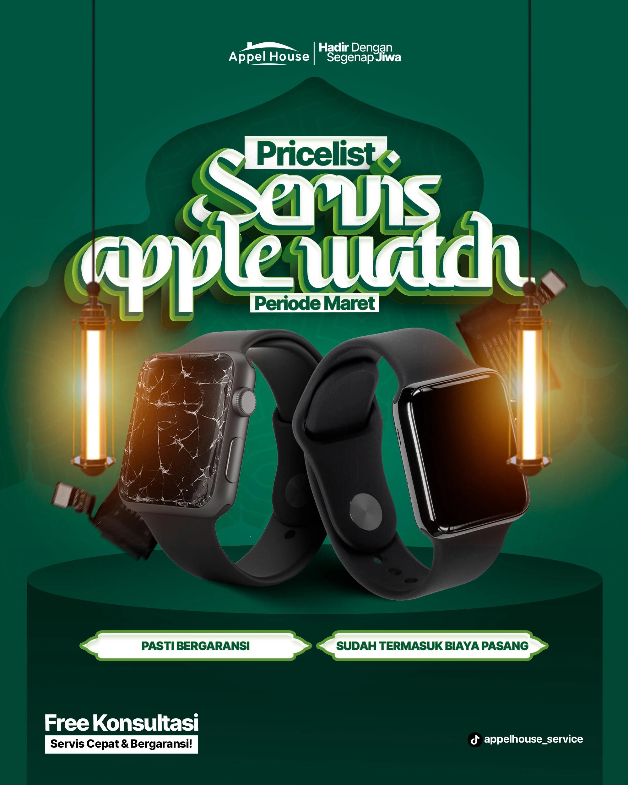 Buat kalian biar ngga ketinggalan informasi penting, update info lengkap cek Media Sosial atau konsultai langsung Appelhouse Service. Pastikan kalian mendapatkan pricelist dan Promo terbaik kami!