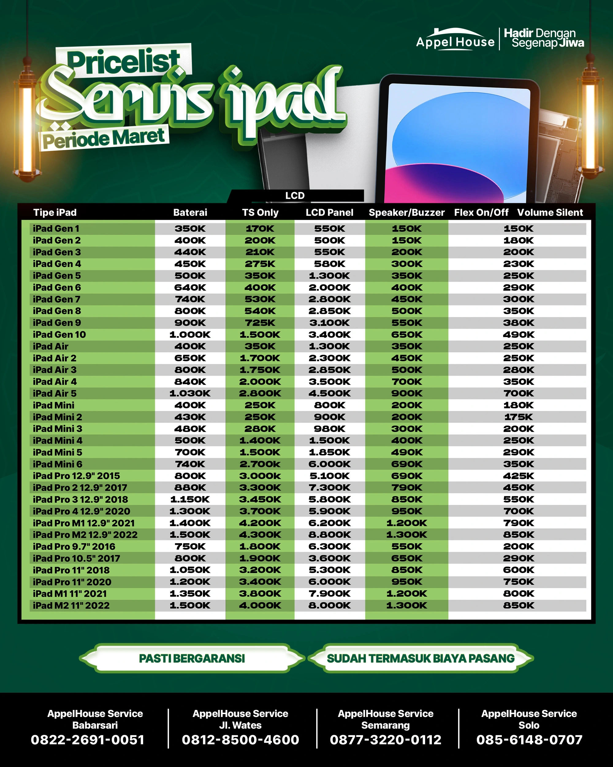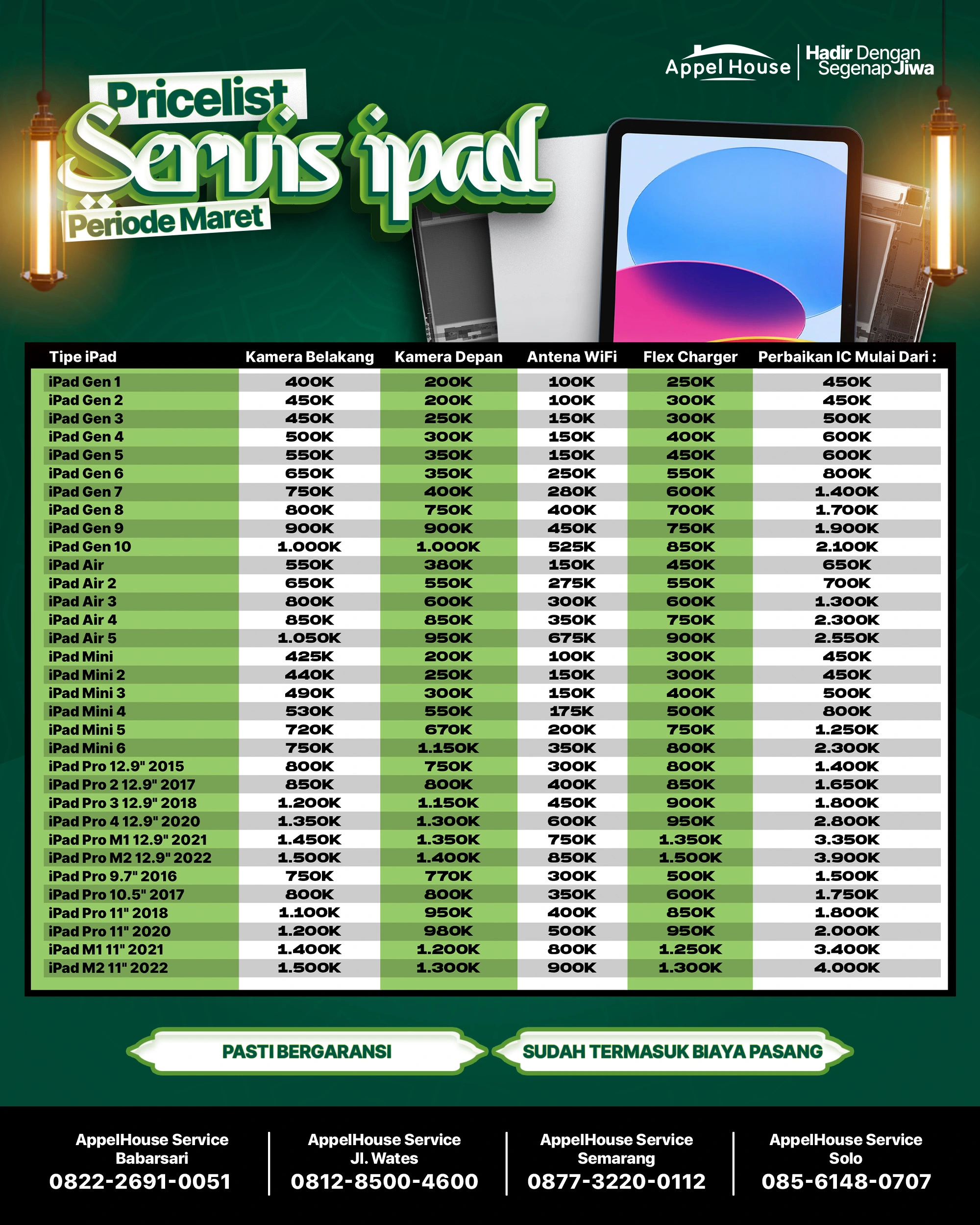 Buat kalian biar ngga ketinggalan informasi penting, update info lengkap cek Media Sosial atau konsultai langsung Appelhouse Service. Pastikan kalian mendapatkan pricelist dan Promo terbaik kami!